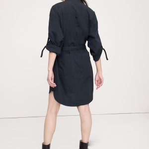 A mini dress that says \”I got this\”. We reimagined utility details to create a twist on the classic shirt dress, seen here in our stretch-cotton ripstop fabric, with its signature grid texture.