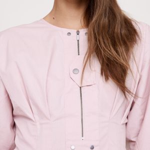 A shirt that says \”I got this\”. We reimagined utility details to create a twist on the classic button placket, seen here in a balloon-sleeve top cut from our stretch-cotton ripstop fabric, with its signature grid texture.