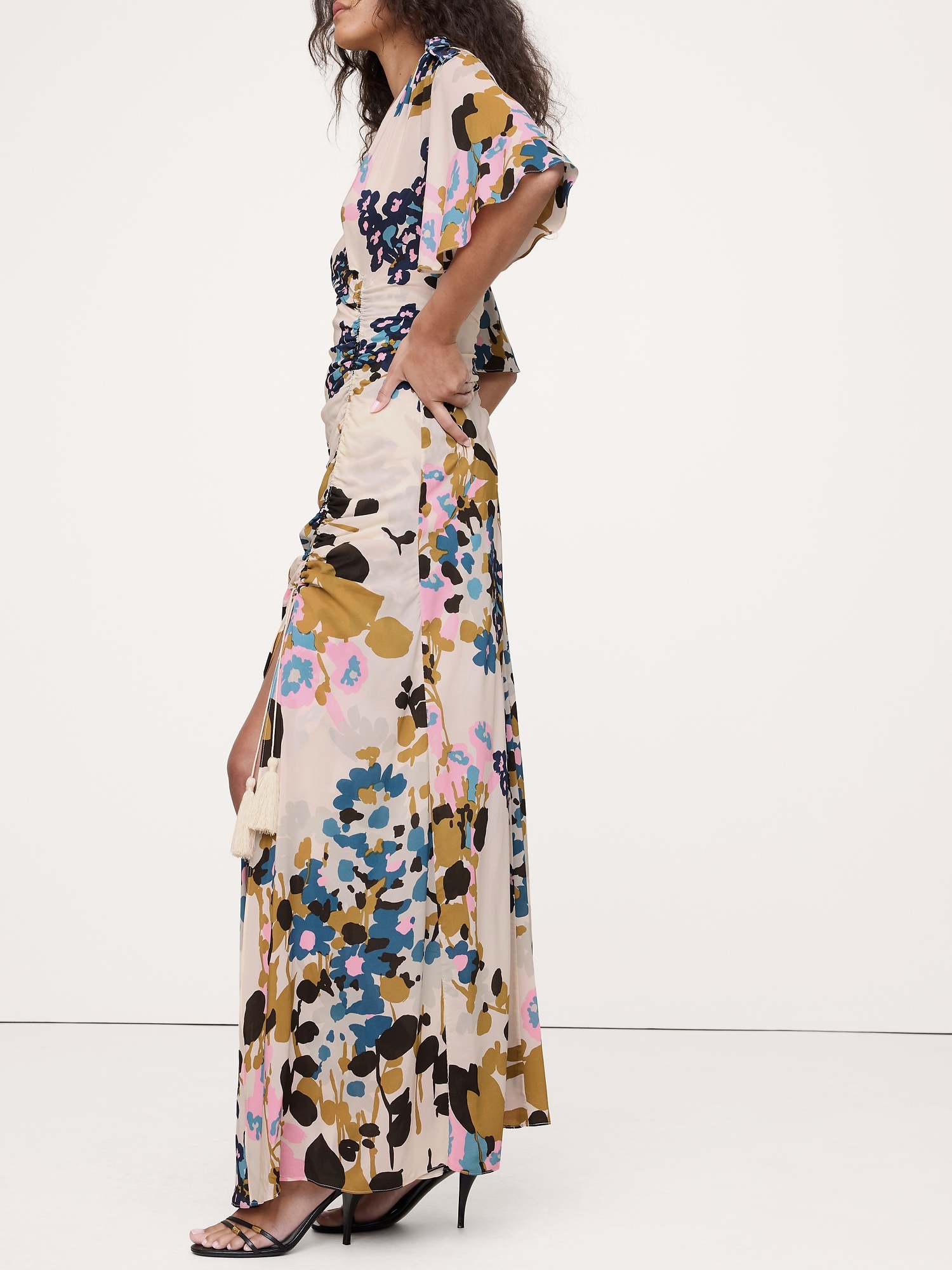 Stretch-Crepe Flutter-Sleeve Maxi Dress