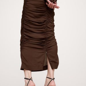Made from intricated ruched panels, this figure-hugging midi dress is cut from our favorite crepe fabric—one we love for its dry handfeel, timeless look, and softness against the skin.