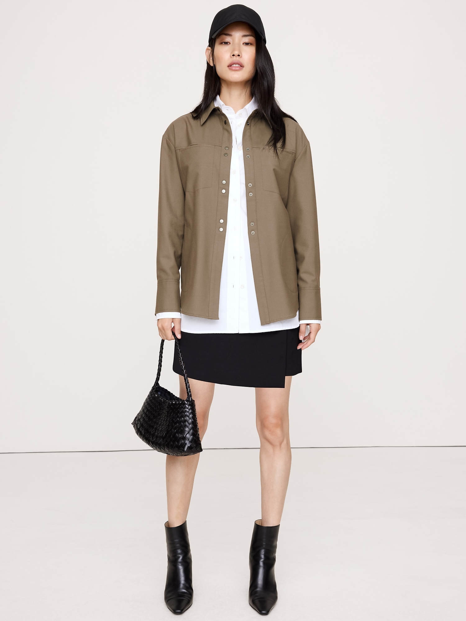 A very cool shirt. We cut this one in an oversized fit from a wool-blend flannel and added a drawstring detail at the back to define your waist.