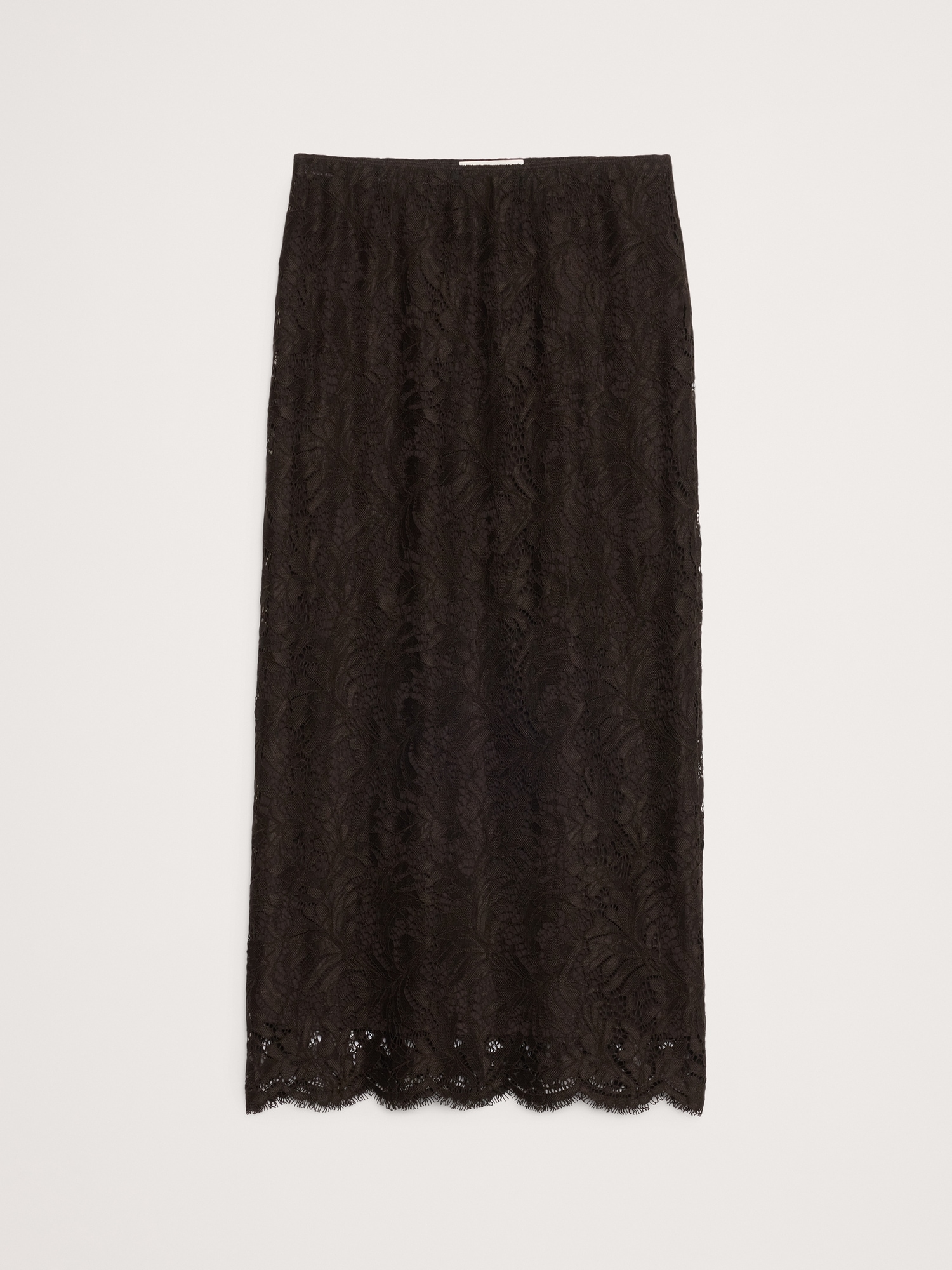 A skirt to make dressing-up feel effortless, we cut this one from stretch-lace and lined it only to the knee, to better show off the scalloped hem detail.