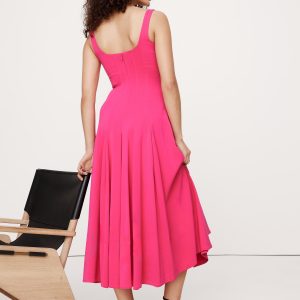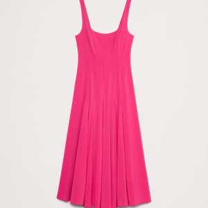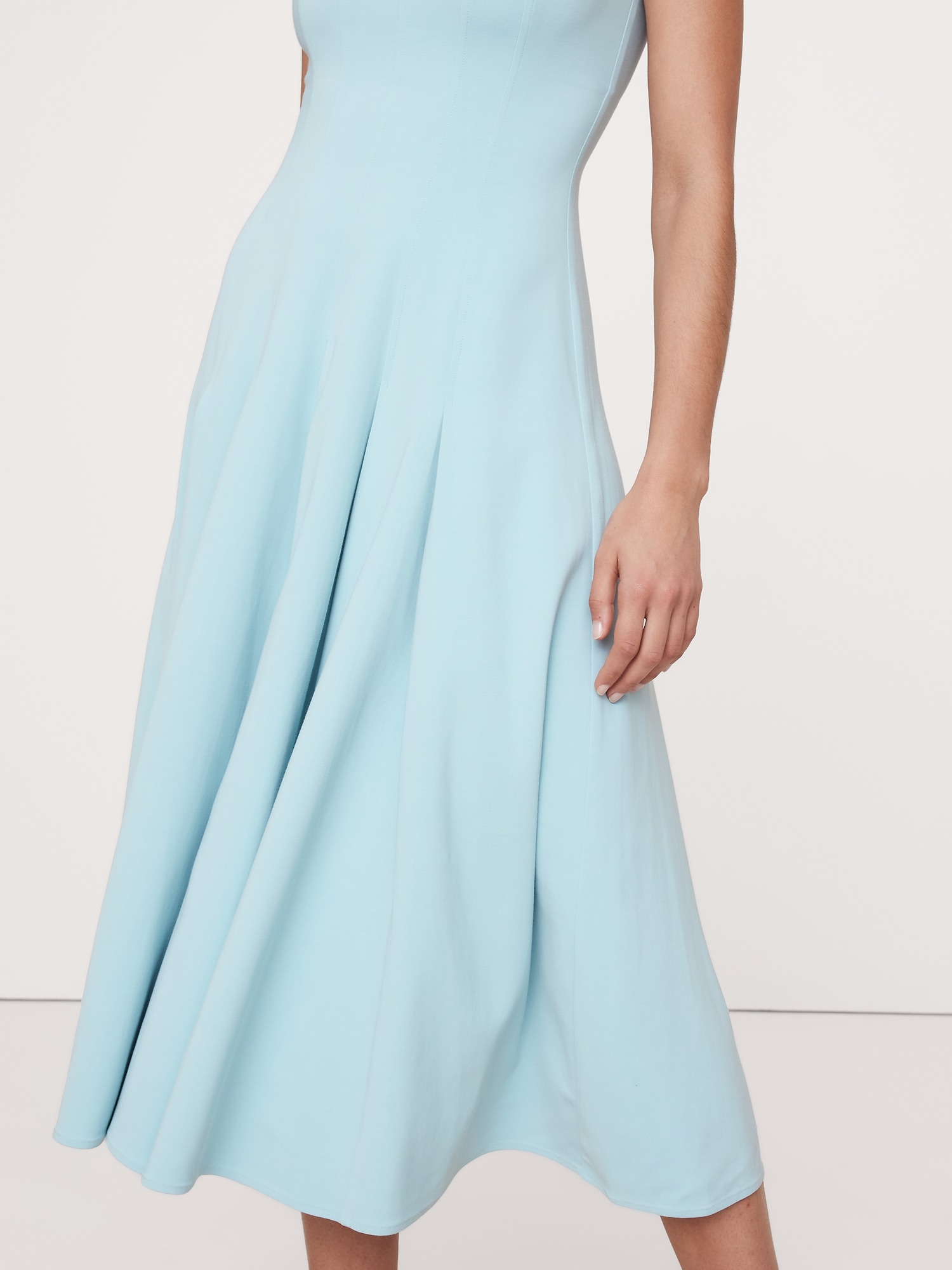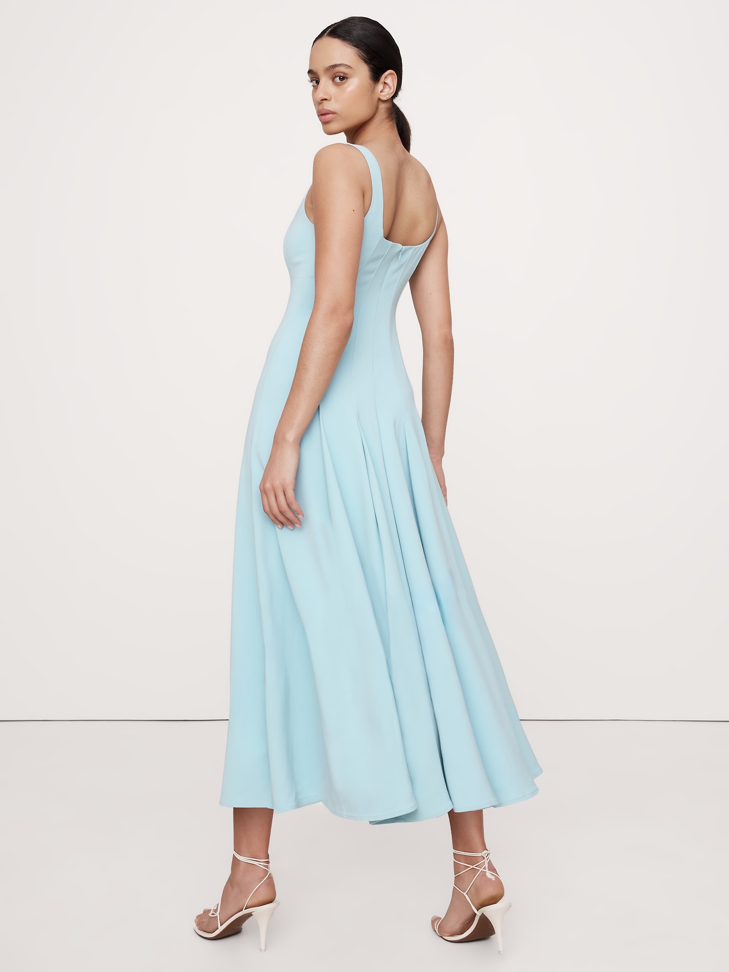 Crafted from a smooth sateen with subtle stretch, this fit-and-flare dress achieves its silhouette with an intricate paneled construction. Plus, the ankle length looks great with heels or flats.