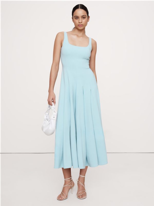 Crafted from a smooth sateen with subtle stretch, this fit-and-flare dress achieves its silhouette with an intricate paneled construction. Plus, the ankle length looks great with heels or flats.