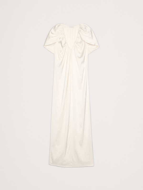 Make an entrance in this maxi dress. There’s a lot to love: the stretch satin fabric, the cape-sleeve detail, and the statuesque, column silhouette.