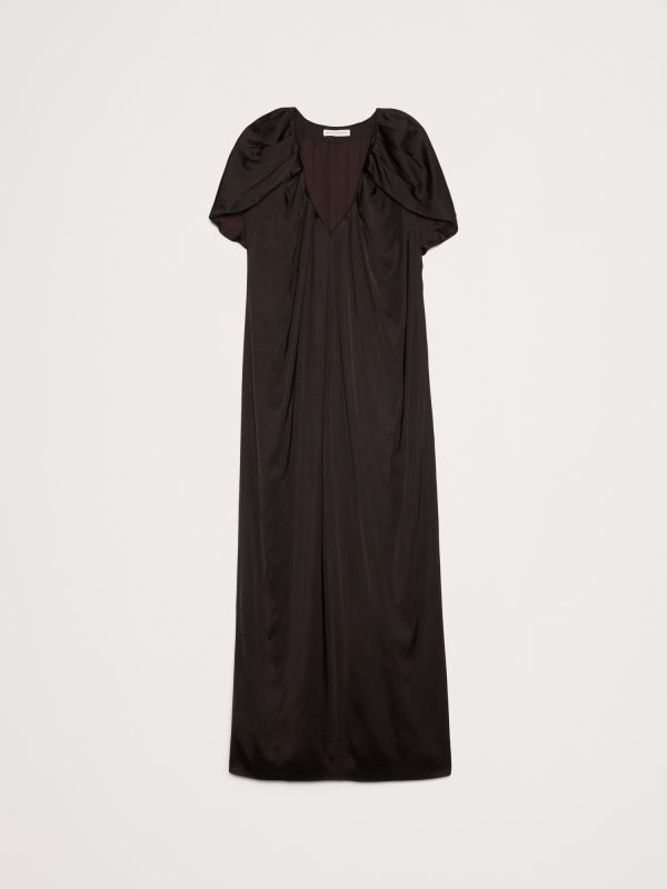 Make an entrance in this maxi dress. There’s a lot to love: the stretch satin fabric, the cape-sleeve detail, and the statuesque, column silhouette.