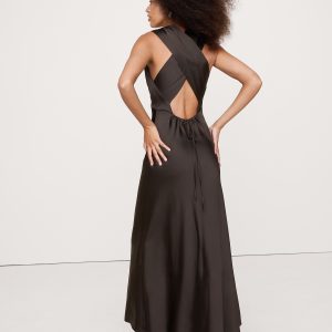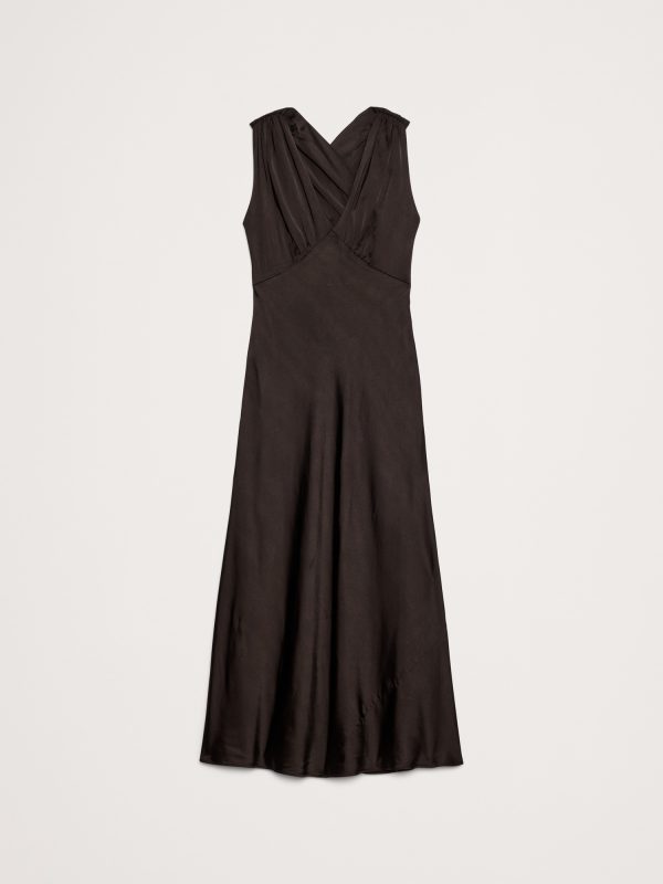 Stretch-Satin Cross-Back Maxi Dress
