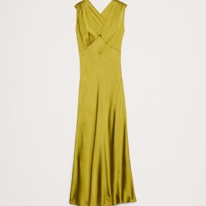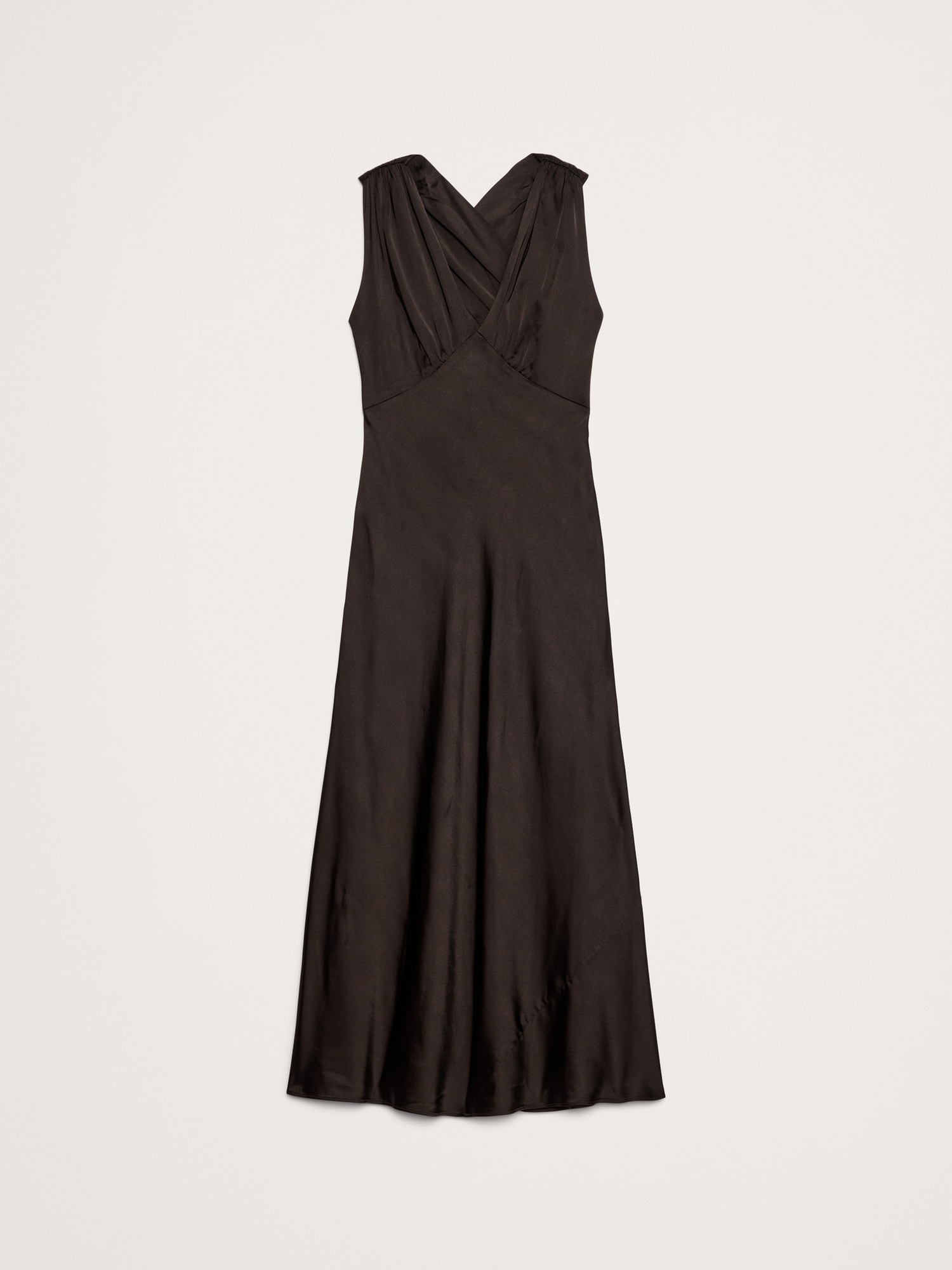 Stretch-Satin Cross-Back Maxi Dress