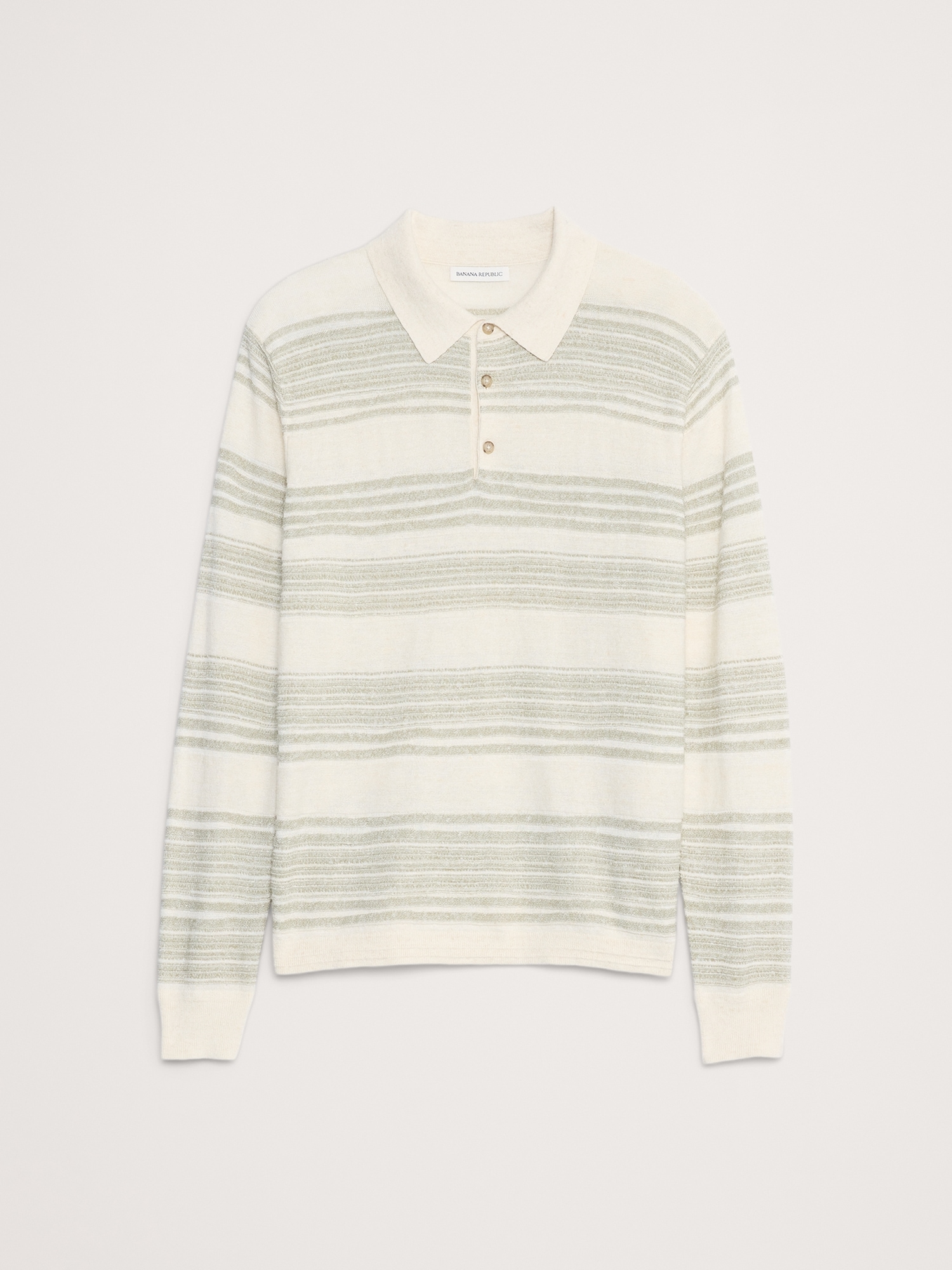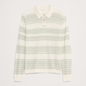 We’re on a mission to make a better-than-vintage sweater polo. Here, a cotton-linen yarn alternates colors to create a retro striped effect with texture.