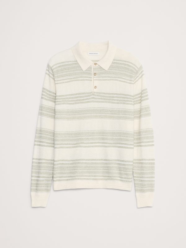 We’re on a mission to make a better-than-vintage sweater polo. Here, a cotton-linen yarn alternates colors to create a retro striped effect with texture.