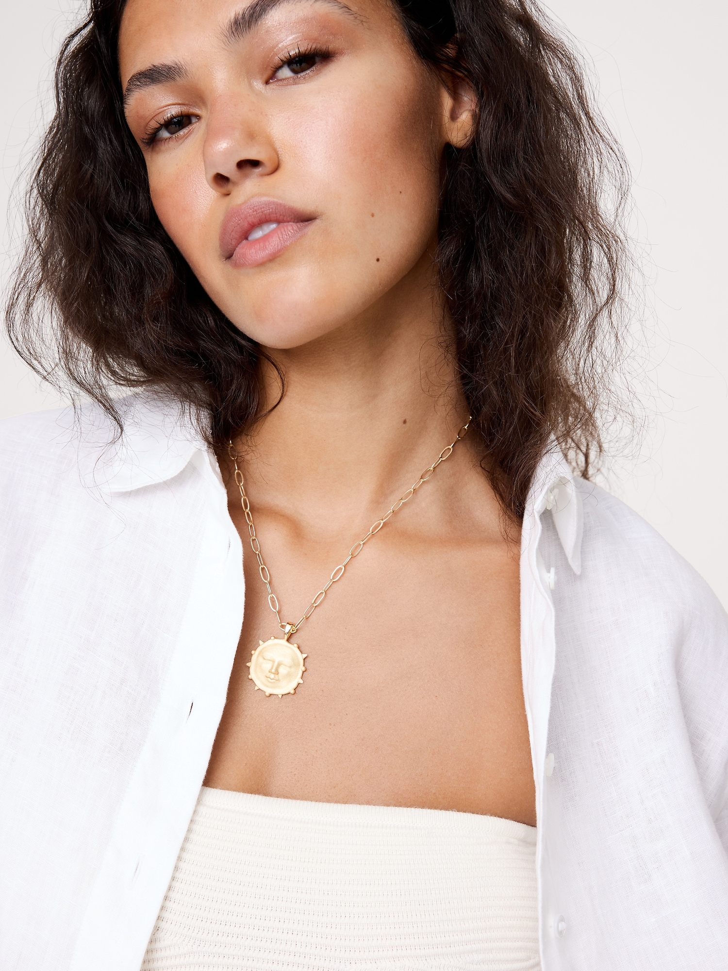 Strong Vintage Sun Face Pendant with Chain by Jane Win