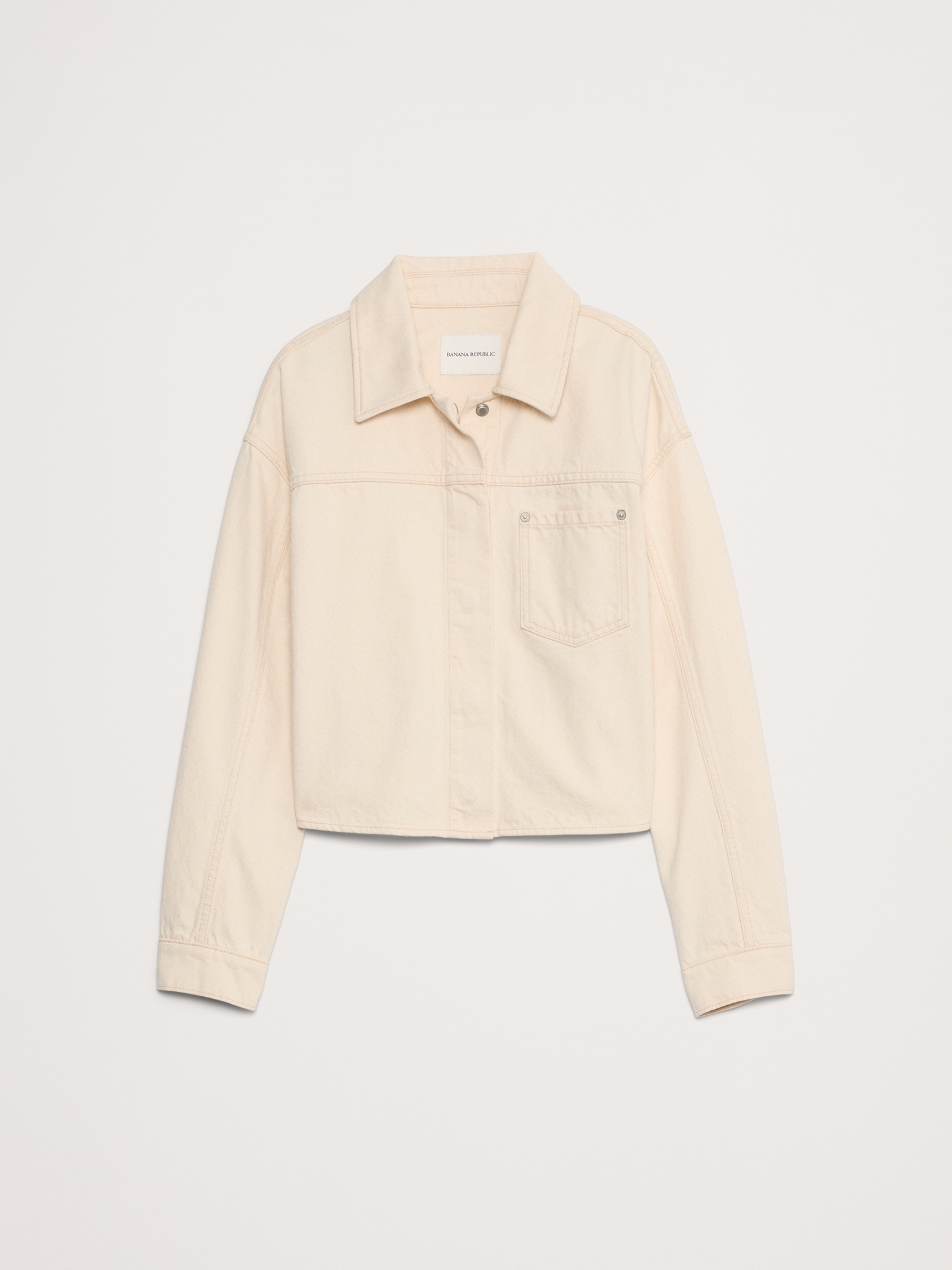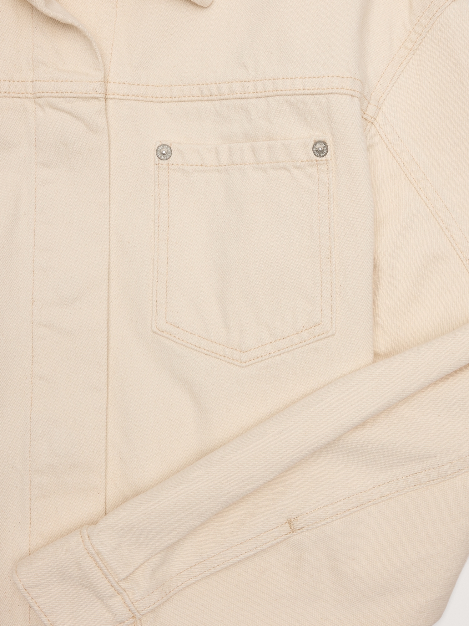 An invitation to play with proportions, this jacket borrows its silhouette from vintage trucker jackets. Our design team updated it with a belt at the back to cinch in the waist—looks great with high-rise jeans.