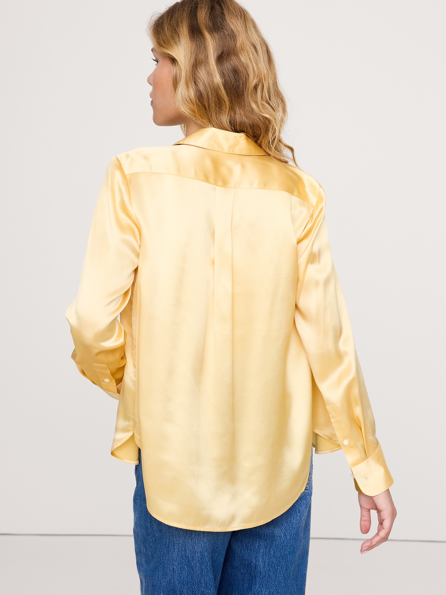 Our Design team’s favorite shirt. We perfected the fit of this shirt so it’s relaxed, but never sloppy. This one’s done up in our signature silk charmeuse—a soft fabric we love for its ability to make every occasion feel a little luxurious. Everyday Fit: Fitted shoulders, relaxed through the chest and waist. Point collar. Troca shell button front. Curved hem. #709208