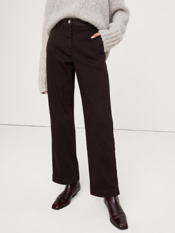 Designed with long weekends in mind, we cut these pants with a straight leg that’s short enough so you can skip the heels. Here, we found a stretchy, cotton twill fabric and added a garment wash for softness. High-Rise Straight Fit: High-rise (10