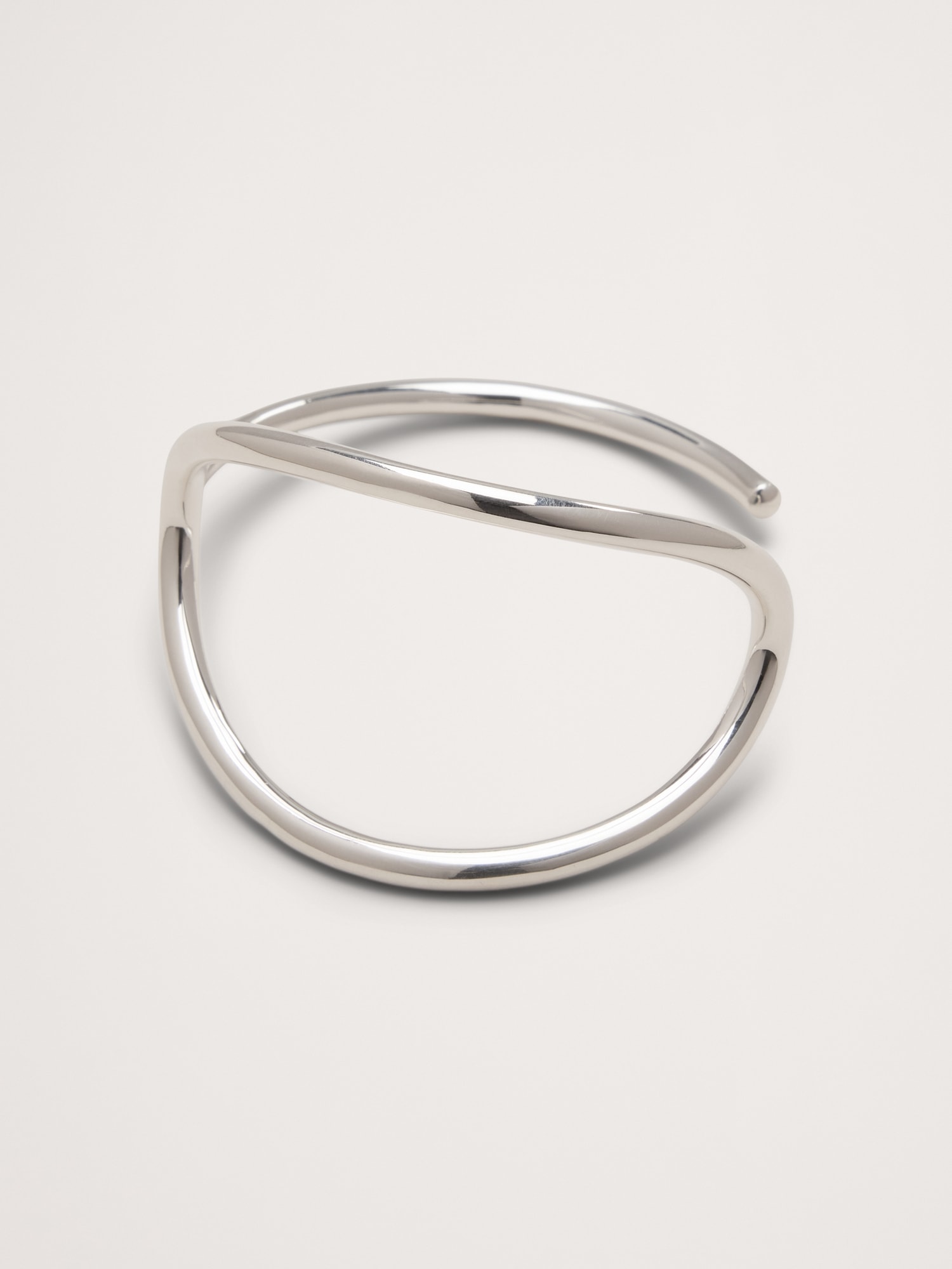 An twisting cuff of coiled silver, 999-silver plated brass.