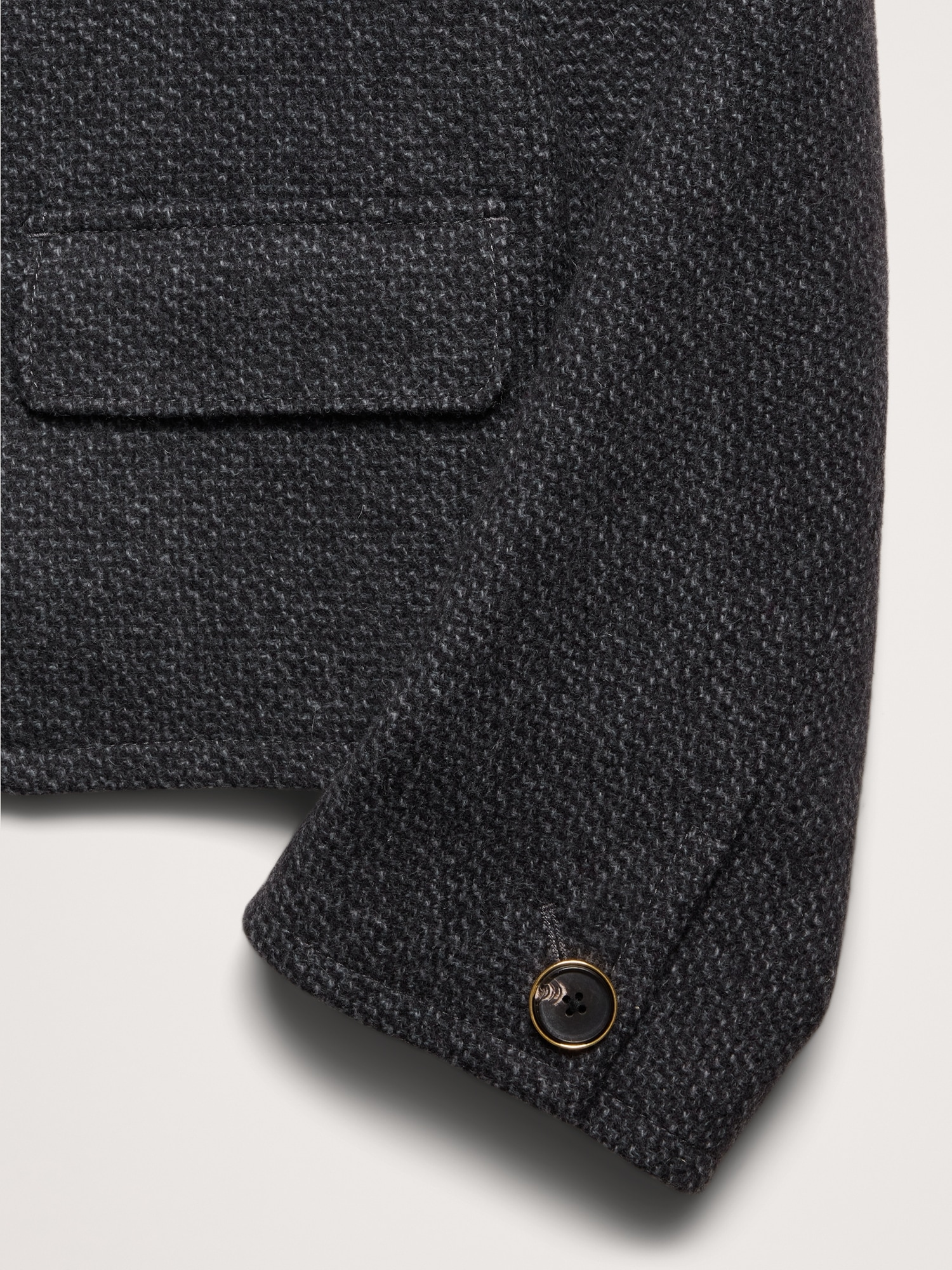 A little tailored, a little at-ease, this collarless lady jacket manages to be sophisticated, yet never stuffy thanks to a cropped length, bracelet-length sleeves, and a beautiful, wool-blend tweed in a midnight navy hue.