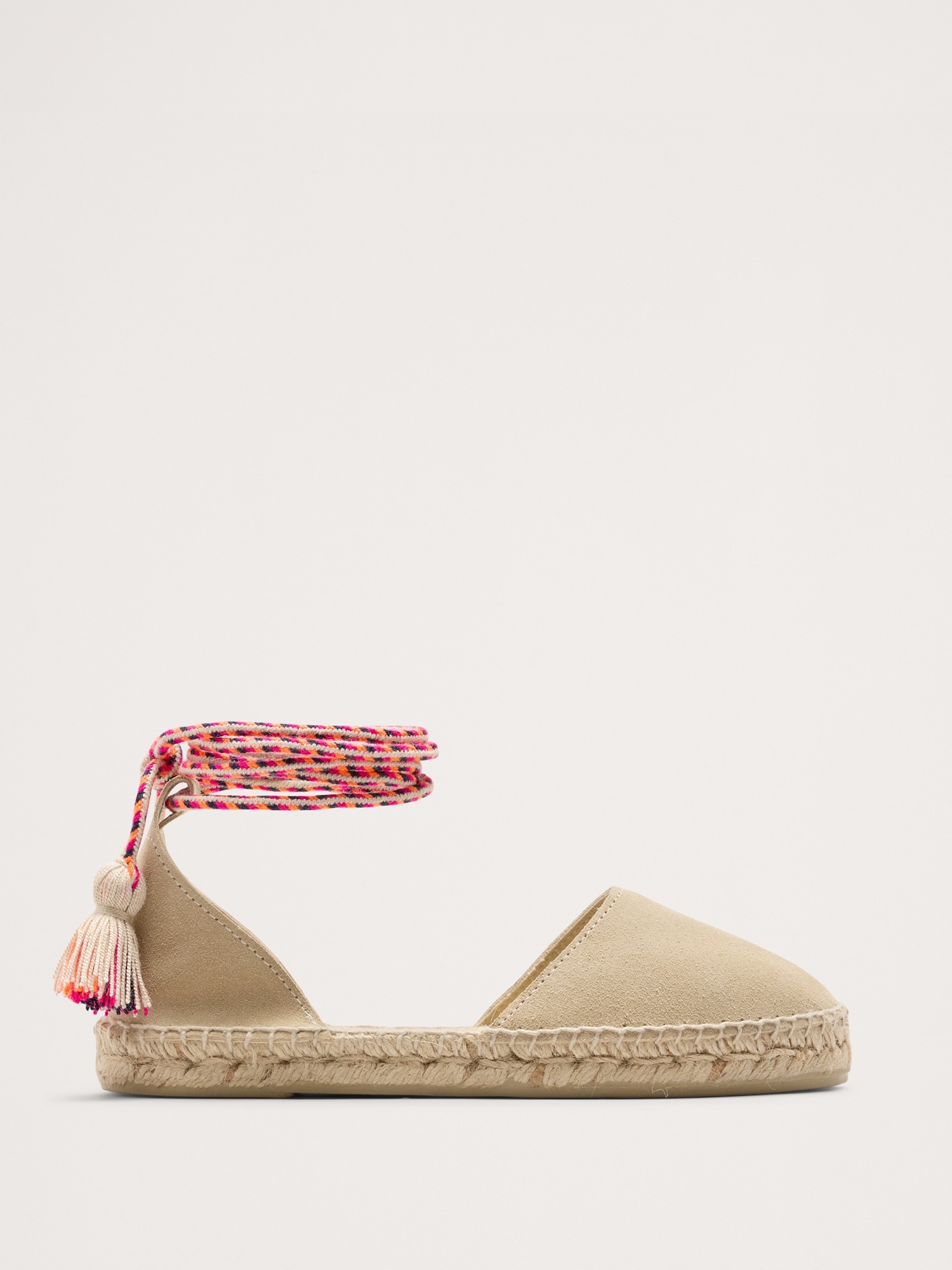 A reimagining of the classic Valencian espadrille, finished with a cord and pom-pom tie hand-crafted by Wayuu artisans.