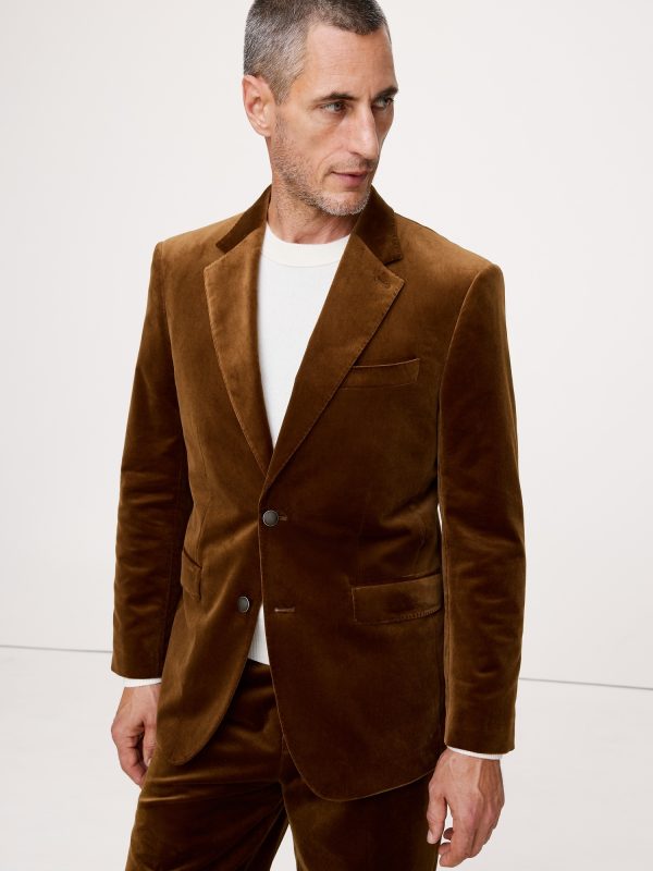 We selected a soft cotton velvet for this statement blazer, cutting it pile-up to enhance its luster and finished with an English-style roped shoulder, which adds a bit of structure and a more formal appearance.