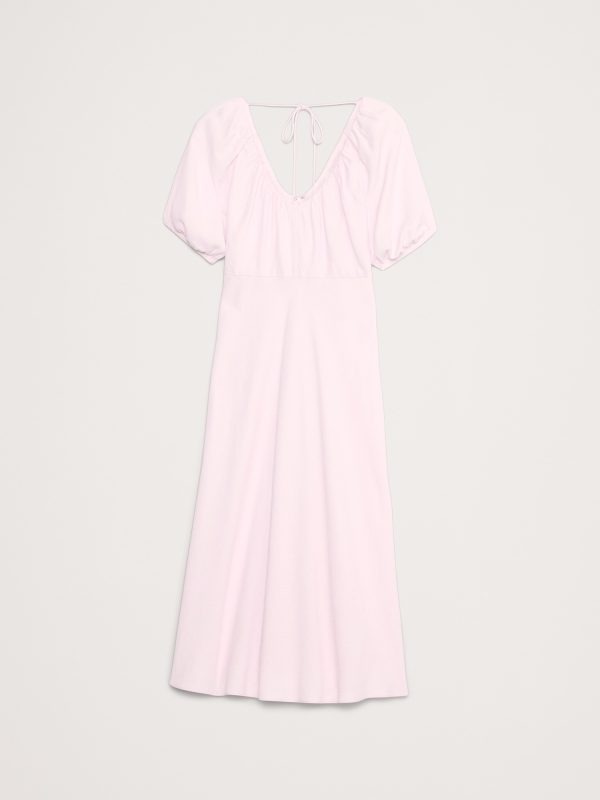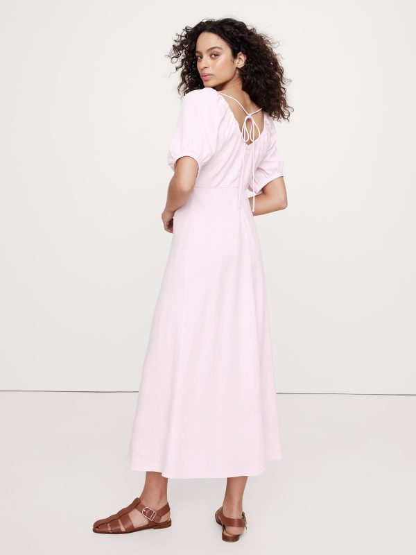 Made for the vacation-minded. This maxi dress has an at-ease fit, crafted in a premium viscose-linen dupioni with distinctive texture.