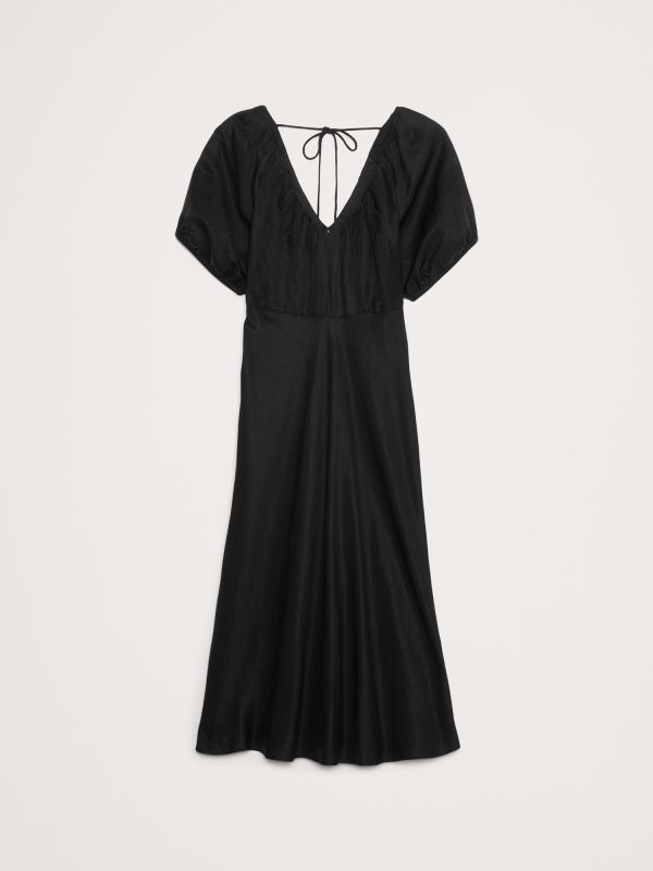 Viscose-Linen Ruched Maxi Dress