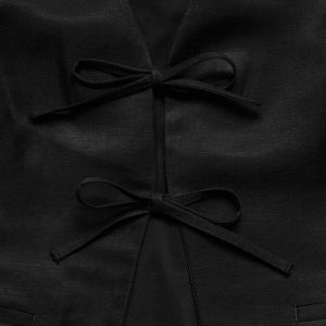 An easy tie-front vest, cut in a silky blend of viscose and linen—an ideal choice in hot, humid weather. Make it a set with the matching pant.