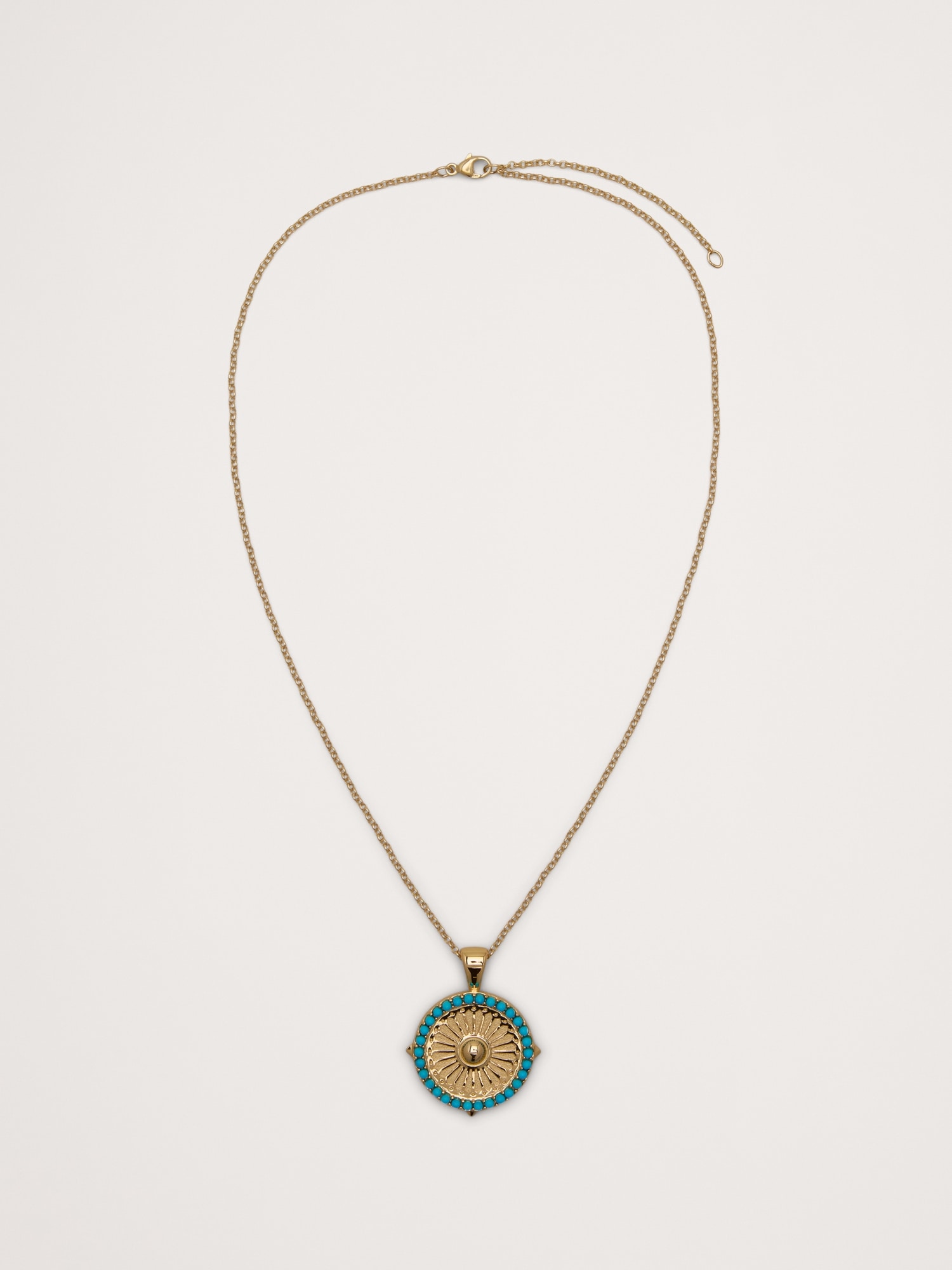 Wanderlust Sunflower Small Embellished Coin with Chain by Jane Win