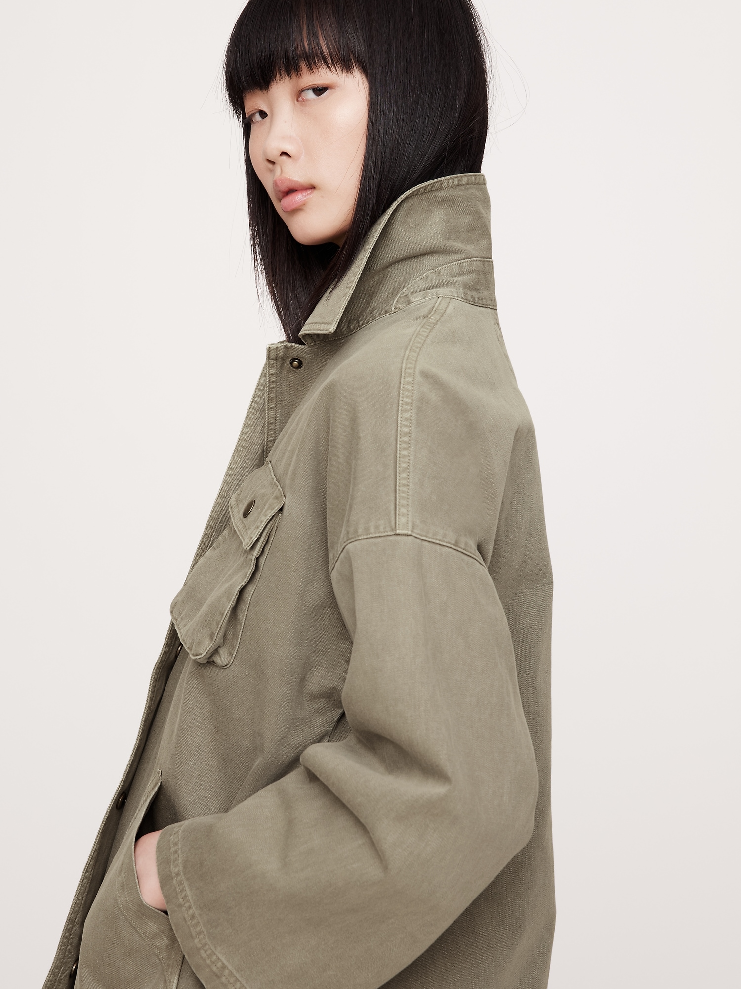 Based on a vintage BR style from the 1990s, we preserved the pockets and oversized fit of the original, cutting it in a sturdy cotton twill that is garment dyed for softness. We love it styled with the sleeves rolled up.