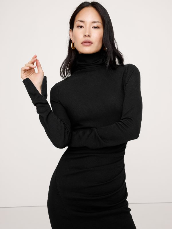Just what we needed. This maxi dress is anything but basic thanks to ruching at the side, a paneled construction, and extra-long sleeves with zips at the cuff. Crafted in a warm wool-blend jersey so it’s t-shirt soft.